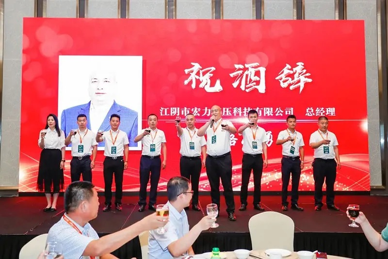 江陰市宏力液壓科技有限公司總經理路小勇先生攜宏力科技營銷將士,為此次午宴致祝酒詞,為會議現場各位領導的遠道而來表示感謝。