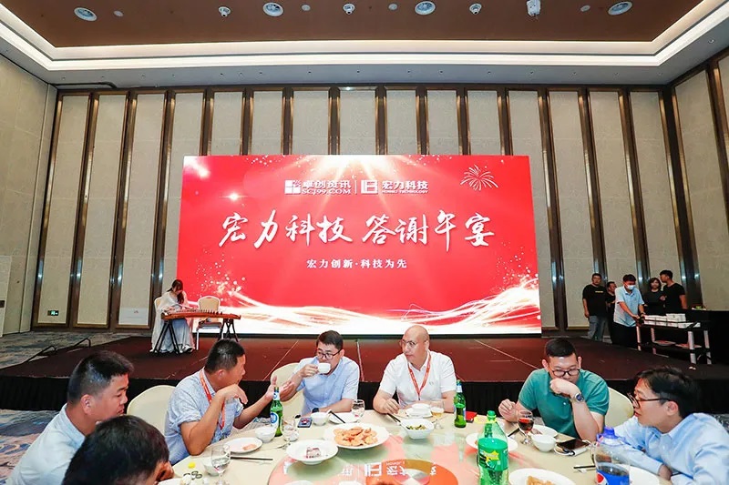 中午,百家爭鳴百花齊放的論壇流程告一段落,精彩盛大的2021中國國際再生資源產業發展大會——宏力科技答謝午宴在一曲婉轉優美的《蘆花》中拉開序幕。